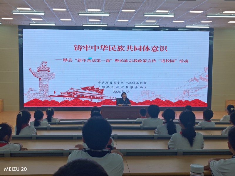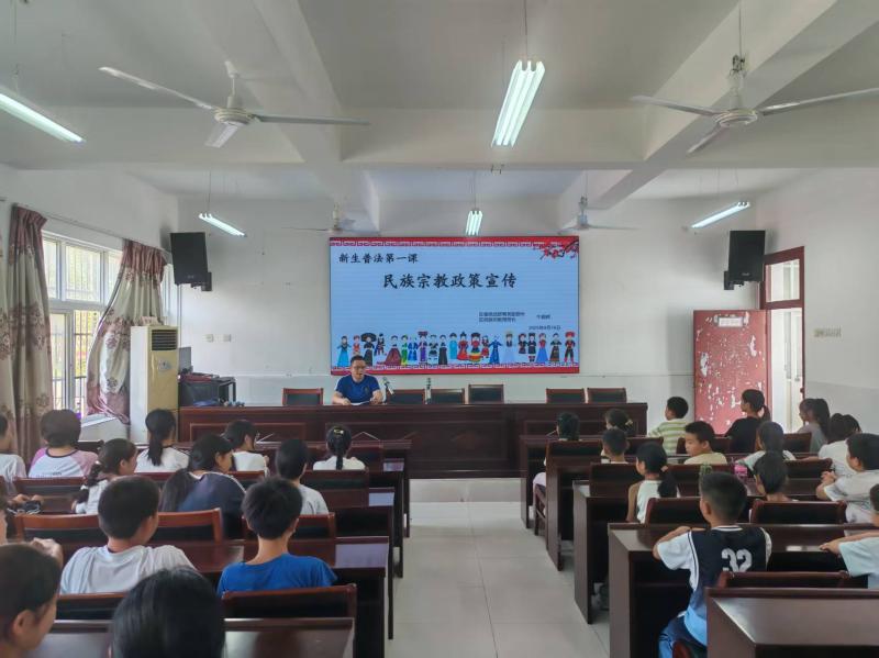 9月2日,黟县县委统战部(民宗局)走进碧山小学,开展“新生普法第一课”暨民族宗教政策宣传“进校园”活动,围绕“铸牢中华民族共同体意识”主题,重点宣讲民族宗教政策法规和相关知识,引导少年儿童从小牢固树立正确的国家观、民族观、历史观,自觉维护民族团结。该校师生130余人参加活动。