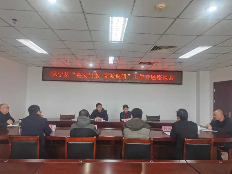 4月2日上午,休宁县召开“县委出题、党派调研”专题座谈会,县委统战部、各民主党派基层组织、县工商联及无党派人士学习联络组负责同志参加会议。