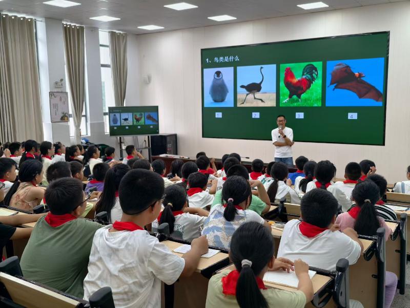 9月9日,“百名专家乡村学堂讲科普”活动走进歙县郑村中心学校。九三学社社员、黄山地质公园博物馆副馆长缪鹏为学校师生作鸟类知识讲座,传播认识自然、尊重自然、顺应自然、保护自然的理念。