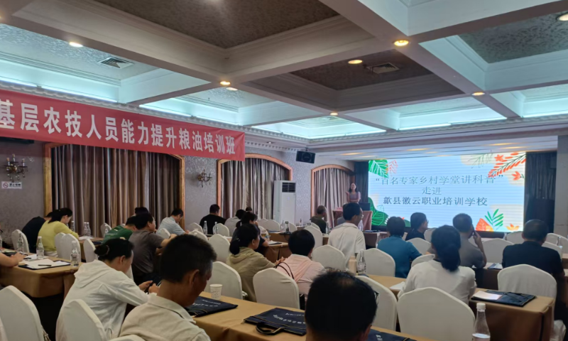 9月9日,“百名专家乡村学堂讲科普”活动走进歙县徽云职业培训学校。九三学社黄山学院支社骨干专家苏胜荣博士受邀为全县28个乡镇的60余名农技骨干带来《害虫防治新技术,节能环保污染少》主题讲座,为基层农技人员送上科技兴农及时雨。