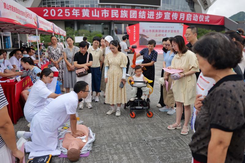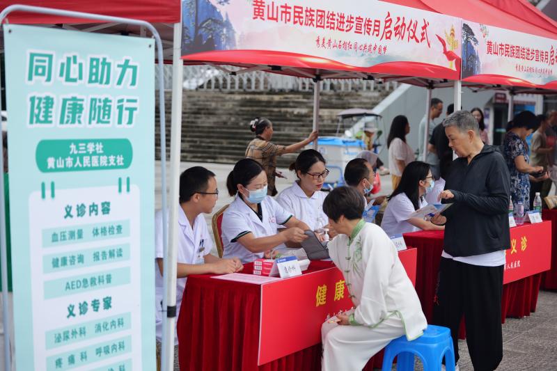 9月9日,在黄山体育馆广场“秀美黄山石榴红 同心共筑中国梦”民族团结进步宣传月启动仪式现场,九三学社黄山市人民医院支社开展“同心助力 健康随行”义诊活动,为现场群众送上健康关怀。