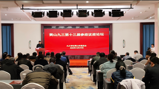 12月19日,九三学社黄山市委会举办第十三届参政议政论坛。黄山市政协副主席、九三学社黄山市委会主委吴灵强出席论坛,副主委程敏主持,副主委张徽秀、张艳参加。市委统战部、市农业农村局、市水利局、市市场监管局等有关单位负责人应邀出席。