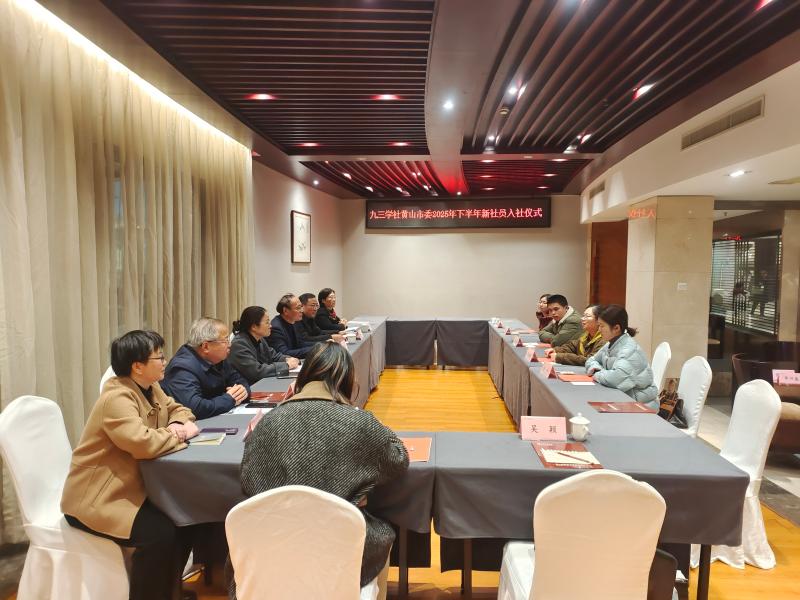 12月19日,九三学社黄山市委会举行2025年下半年新社员入社仪式,黄山市政协副主席、九三学社黄山市委会主委吴灵强出席仪式并讲话,专职副主委张徽秀主持,副主委程敏、张艳参加。
